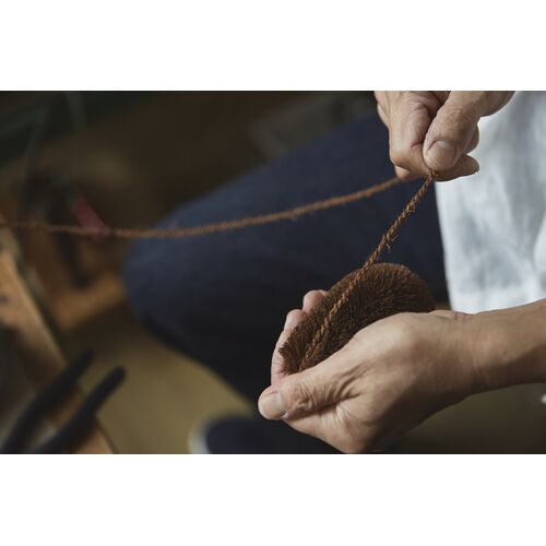 高田耕造商店の作る棕櫚のたわしは一つずつ職人の手で巻き上げられています。
